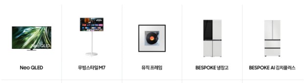 가전 : TV, 냉장고, 세탁기, 건조기, 에어컨 스타일러 공기청정기, 무선청소기등 최대 40% 할인된 가격을 제공한다.