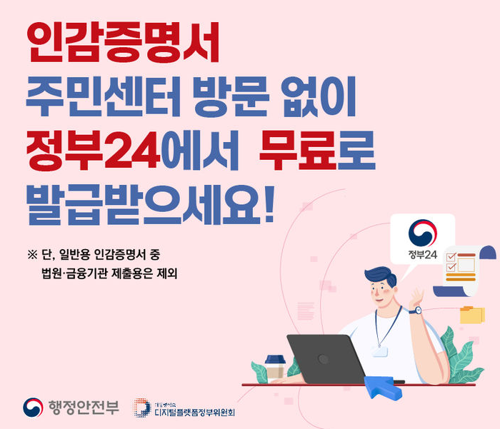 110년 만에 처음으로 주민센터를 방문해야만 발급되던 인감증명서를 온라인에서도 발급받을 수 있게 된다. 행정안전부는 ‘정부 24(https://www.gov.kr)’에서 인감증명서를 무료로 발급받을 수 있도록 30일부터 한 달간 시범운영을 한 후 11월 1일부터 본격적으로 서비스를 제공할 계획이라고 밝혔다.
