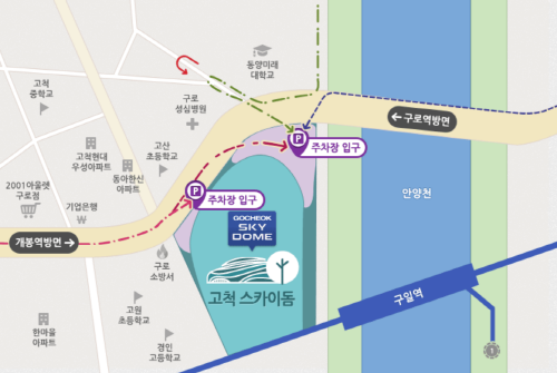 가급적 대중교통을 이용하셔야 불편함이 없습니다. 고척스카이돔 인근주차장은 협소하고 교통이 매우 혼잡하여 주차에 많은 어려움이 있습니다. 꼭 차를 가